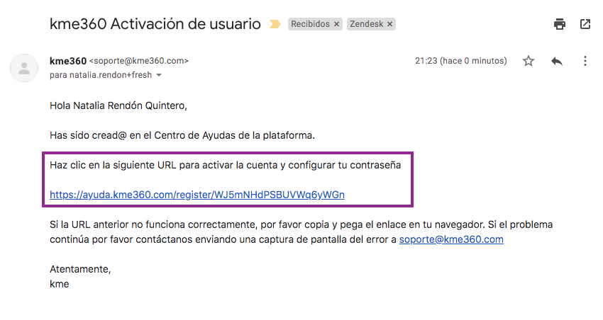 1. Cuando envías tu primera solicitud al correo soporte@mykme.com o soporte@kme360.com, la cuenta de correo desde la cual envías la solicitud, queda registrada en nuestro Centro de Ayudas.