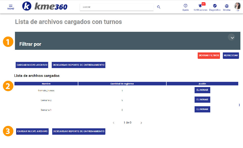 Ten en cuenta: En la tabla de turnos, encontrarás una columna llamada "Cantidad de registros", que indica cuántos registros se cargaron exitosamente. Si el valor es 0, significa que ningún registro se cargó, posiblemente debido a un error. En estos casos, la persona responsable de la carga recibirá una notificación con más detalles sobre lo ocurrido.